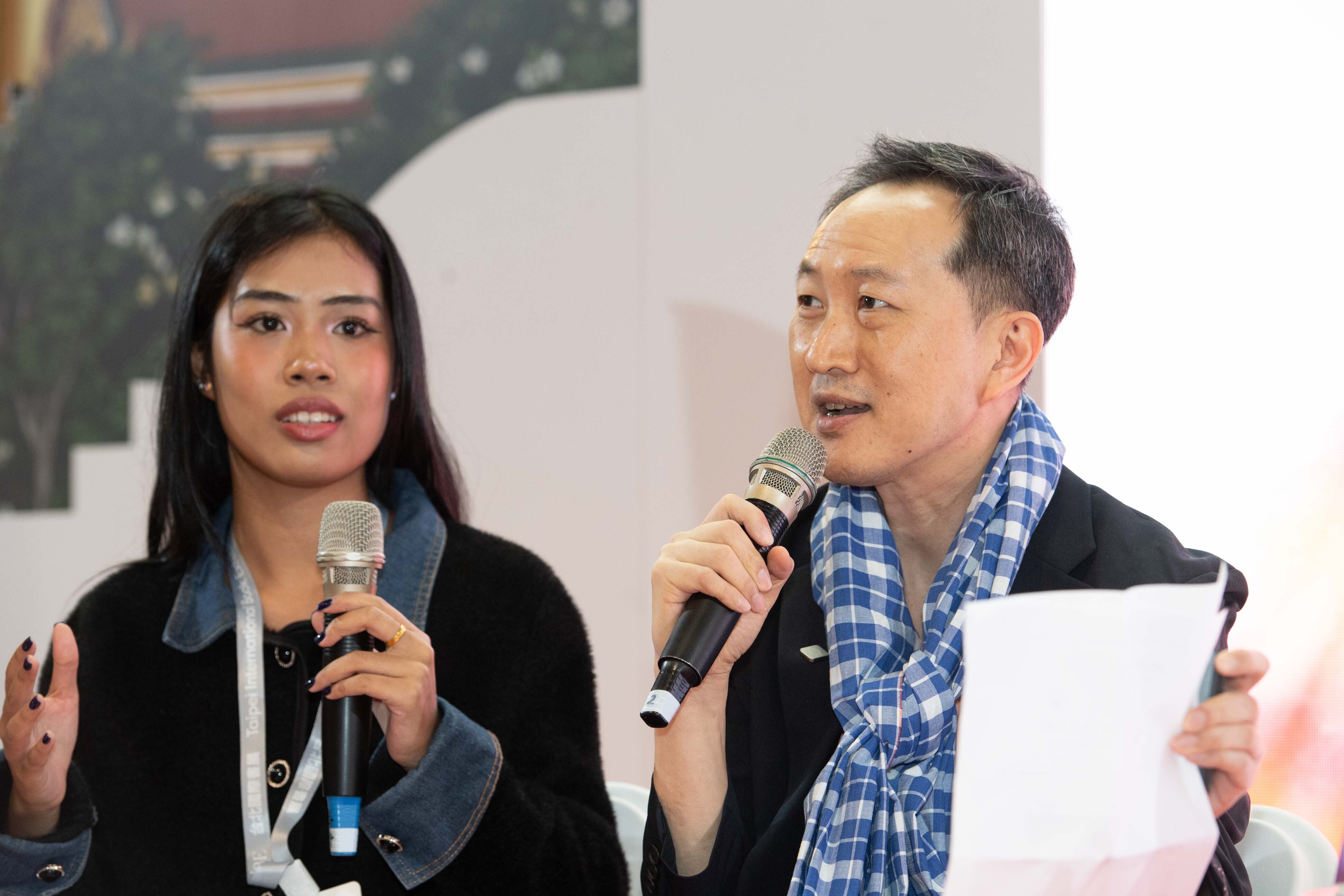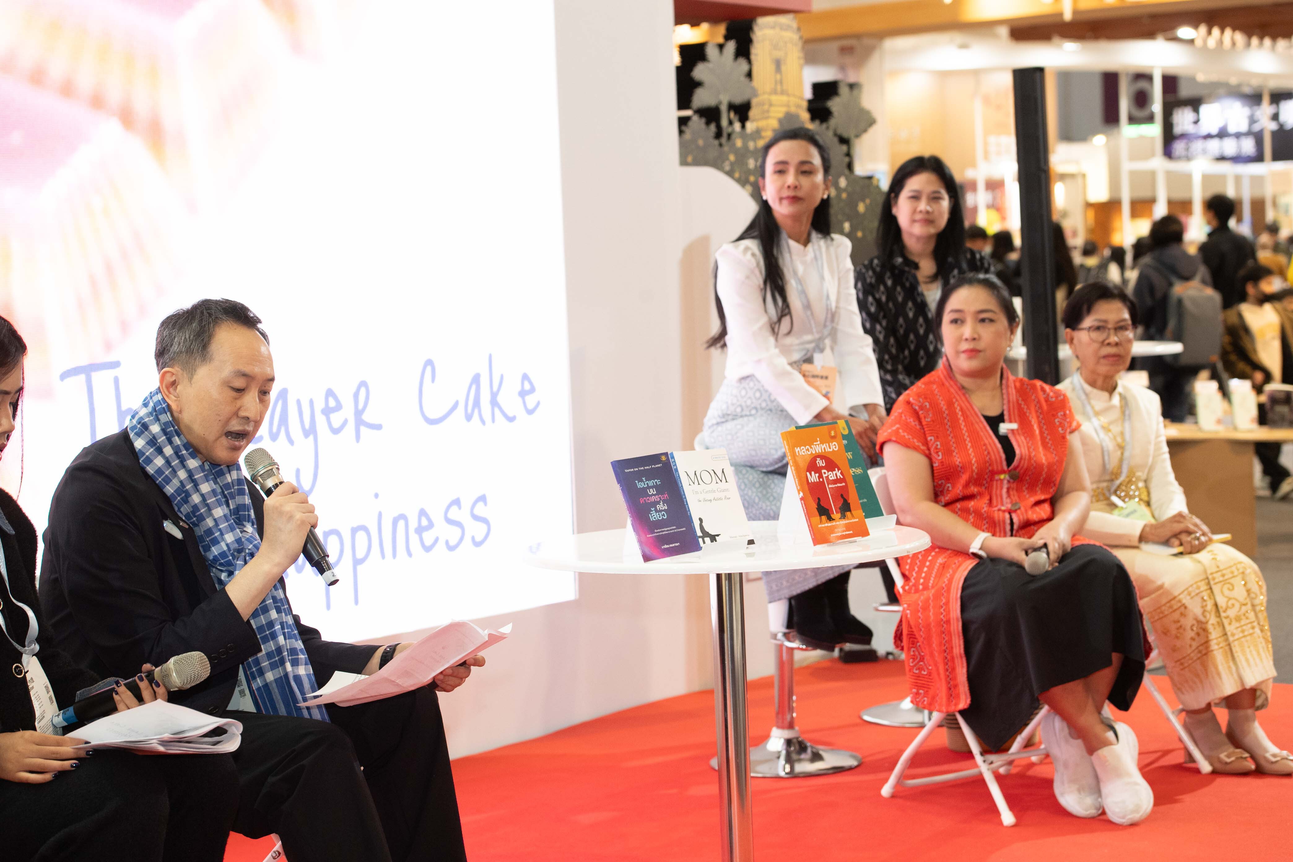臨床醫師 Puwat Charukamnoetkanok 以泰國經典甜點 Thai Layer Cake(娘惹糕)比喻人生的快樂層次,指出幸福並非單一感受,而是從獲得、給予、寧靜到智慧逐層累積,邀請聽眾重新理解幸福的深度。身兼獸醫、教師與作家的 Rashachanok Buddhachayawat 則從日常生活出發,分享泰國人重視簡單與平凡的生活哲學,並以「榴槤種子不必長成玫瑰」形容每個人都應順著自身節奏,找到屬於自己的快樂方式。