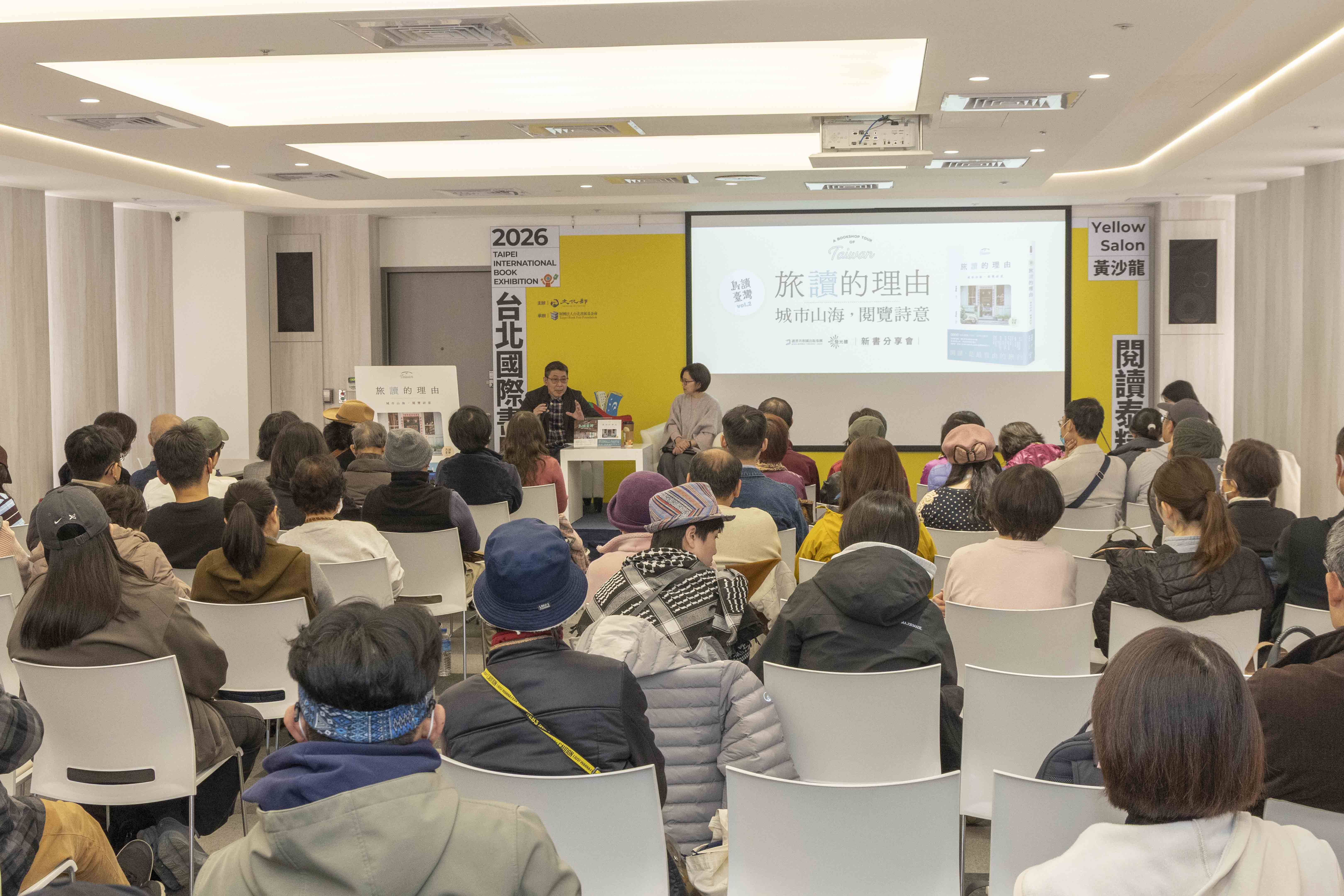 今日(2/8)2026台北國際書展於世貿一館黃沙龍舉辦「閱讀,是最自由的旅行 《島讀臺灣2 旅讀的理由:城市山海,閱覽詩意》新書分享會」,作家詹慶齡、駅本屋店主簡明輝,以及幕後團隊成員陳文欣,帶領觀眾從不同視角看見「旅讀」獨立書店的故事。