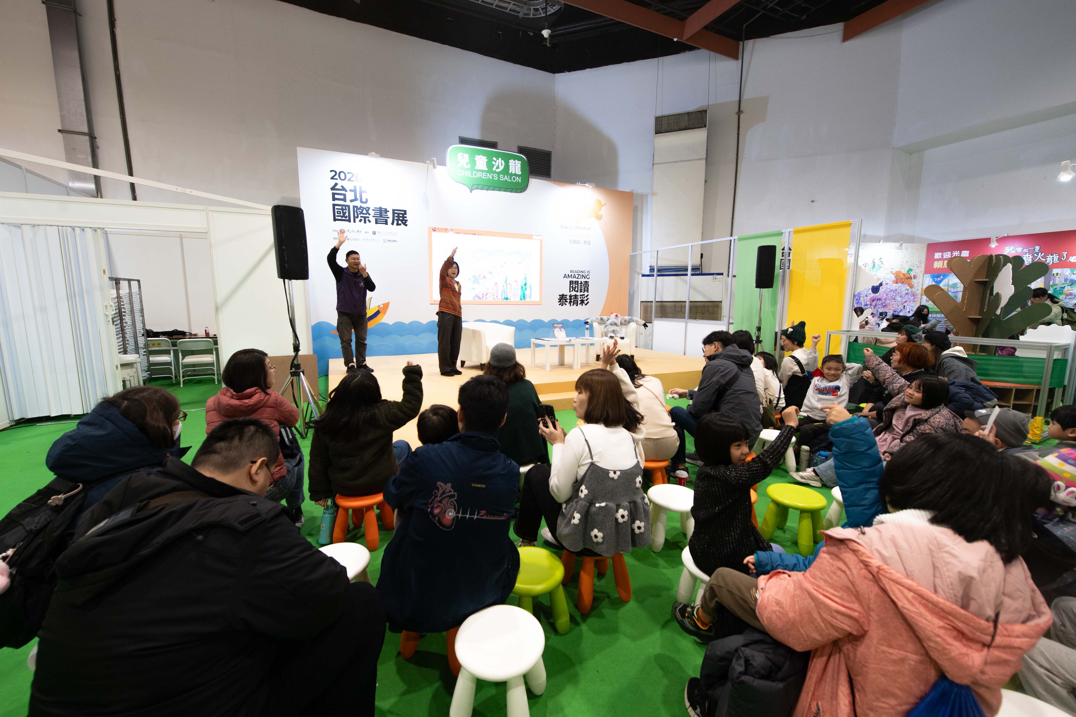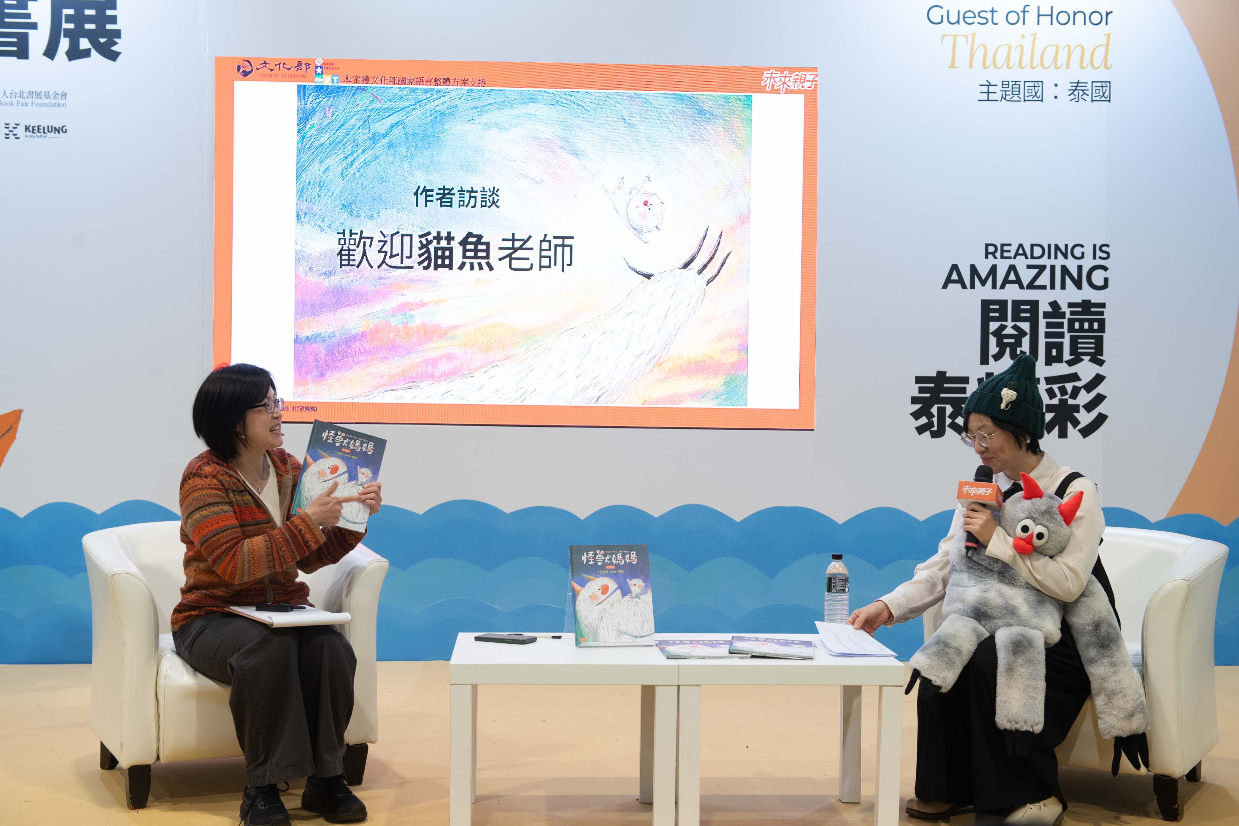 為推廣台語閱讀與親子共學,今(2/8)日於書展現場舉辦台語說故事活動,朗讀作者貓魚所創作的《怪獸媽媽》,並邀請台語朗讀者海翁進行朗讀,帶領現場小朋友一同以台語閱讀繪本,在歡笑與學習中感受母語的溫柔與力量,成為書展中別具特色的親子亮點活動。