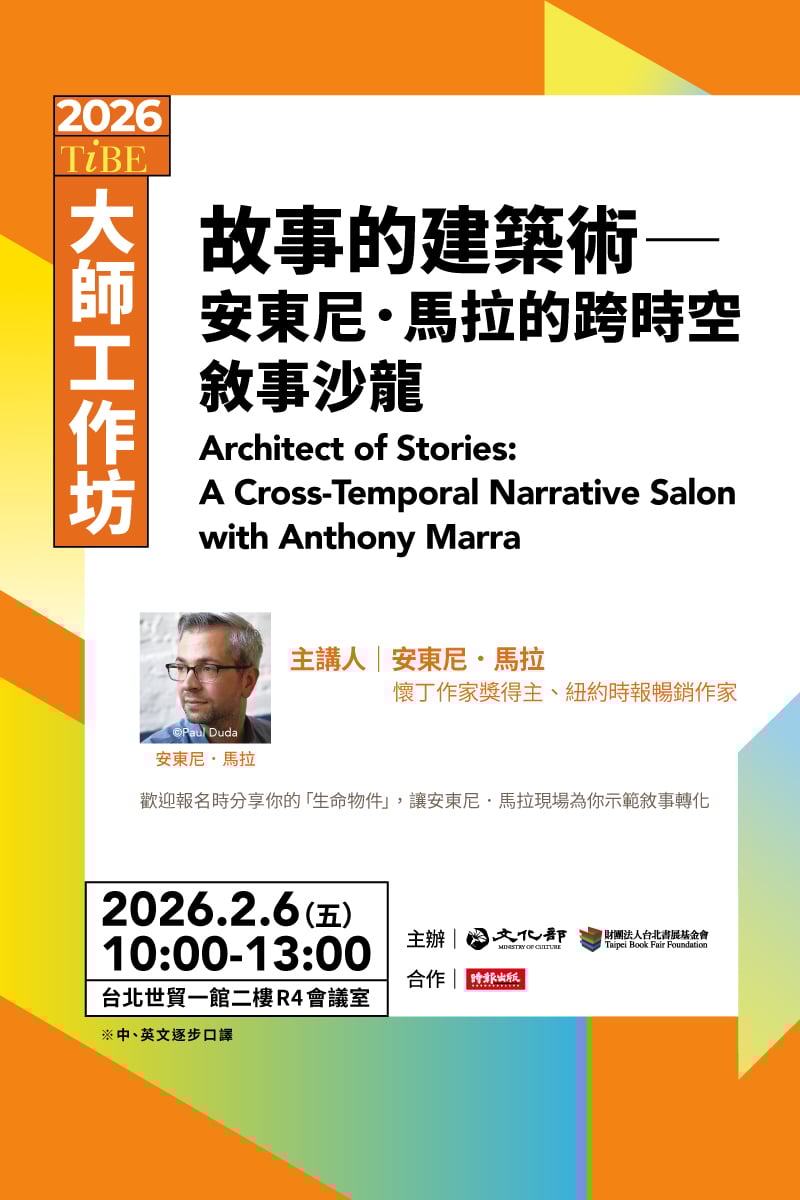 歡迎報名 2026TIBE大師工作坊:故事的建築術── 安東尼.馬拉的跨時空敘事沙龍