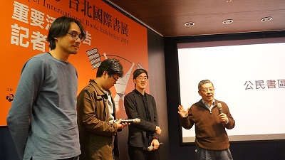 在「公民書區」部分,台灣獨立書店文化協會理事長陳隆昊說,這是台灣獨立書店文化協會、獨立出版聯盟和台灣勞工陣線協會三個單位聯合展出的第三次,也是向大家展現閱讀是一種力量。獨立出版聯盟理事長劉霽指出,此時正值書店站在時代的分水嶺,這也是展望未來的時刻,就要提供更多想像力,因此今年主題以獨特屬於我們這時代的未來,因此做出「讀字漫遊2037」。今年現場也會特別強調電子化的特效。台灣勞工陣線協會教育推廣部主任楊書瑋說,NGO團體發展很早,出版品也許不是大家平常看得到,希望透過講座的方式,憑著他們草根性的互動,能和民眾有一些互動。台灣獨立書店文化協會常務理事鍾尚樺指出,為了讓獨立書店成為國人的一種驕傲,今年北中南都有安排小型書展及超過20場講座,並把獨立書店的概念帶到北中南,即使在書展這一周無法到場,也可透過這些小型書展了解書市訊息。而為了配合主題國,今年甚至有以色列作家到台中做2場分享。