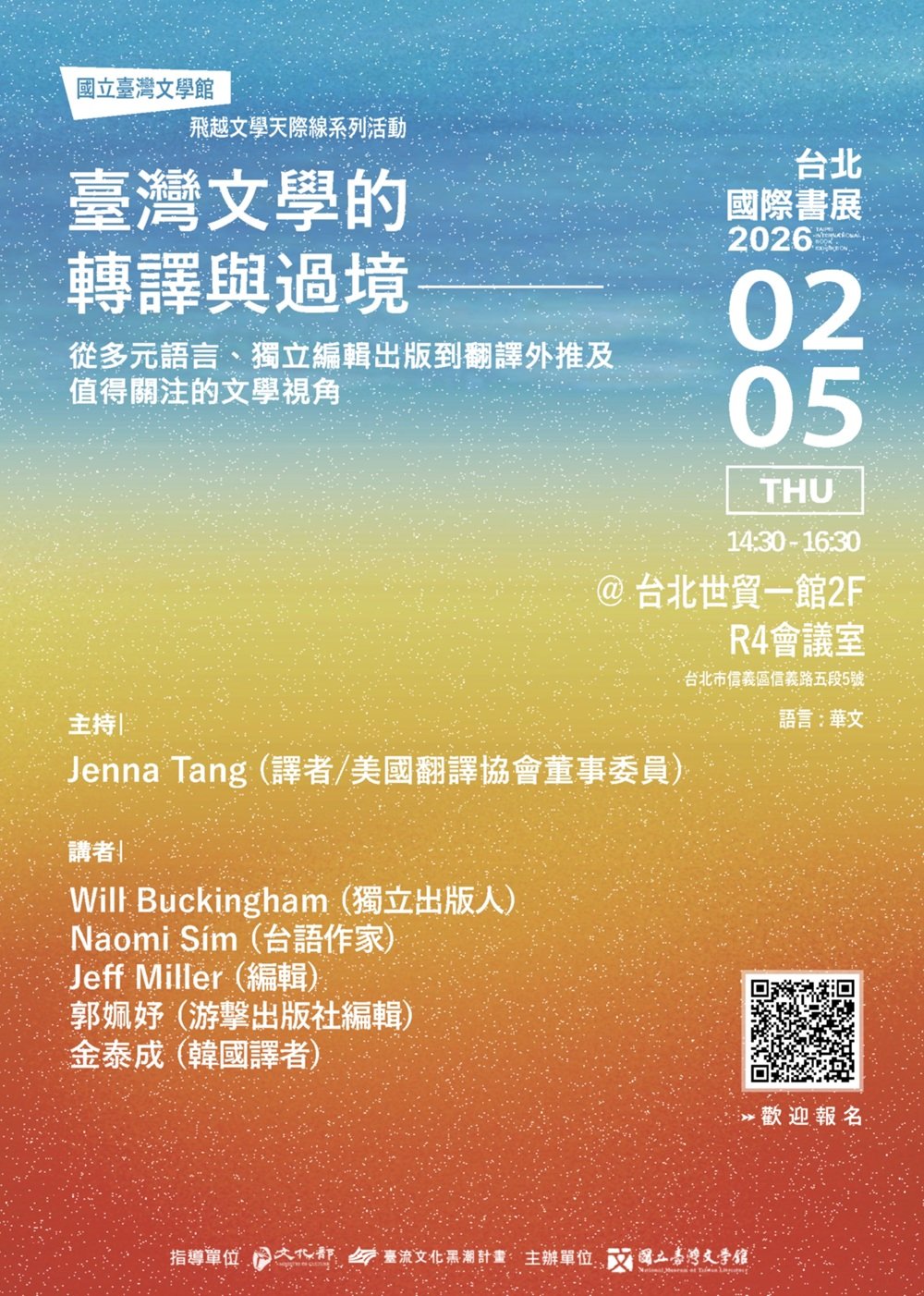 歡迎譯者朋友報名!【臺灣文學的轉譯與過境】交流活動就在2026台北國際書展