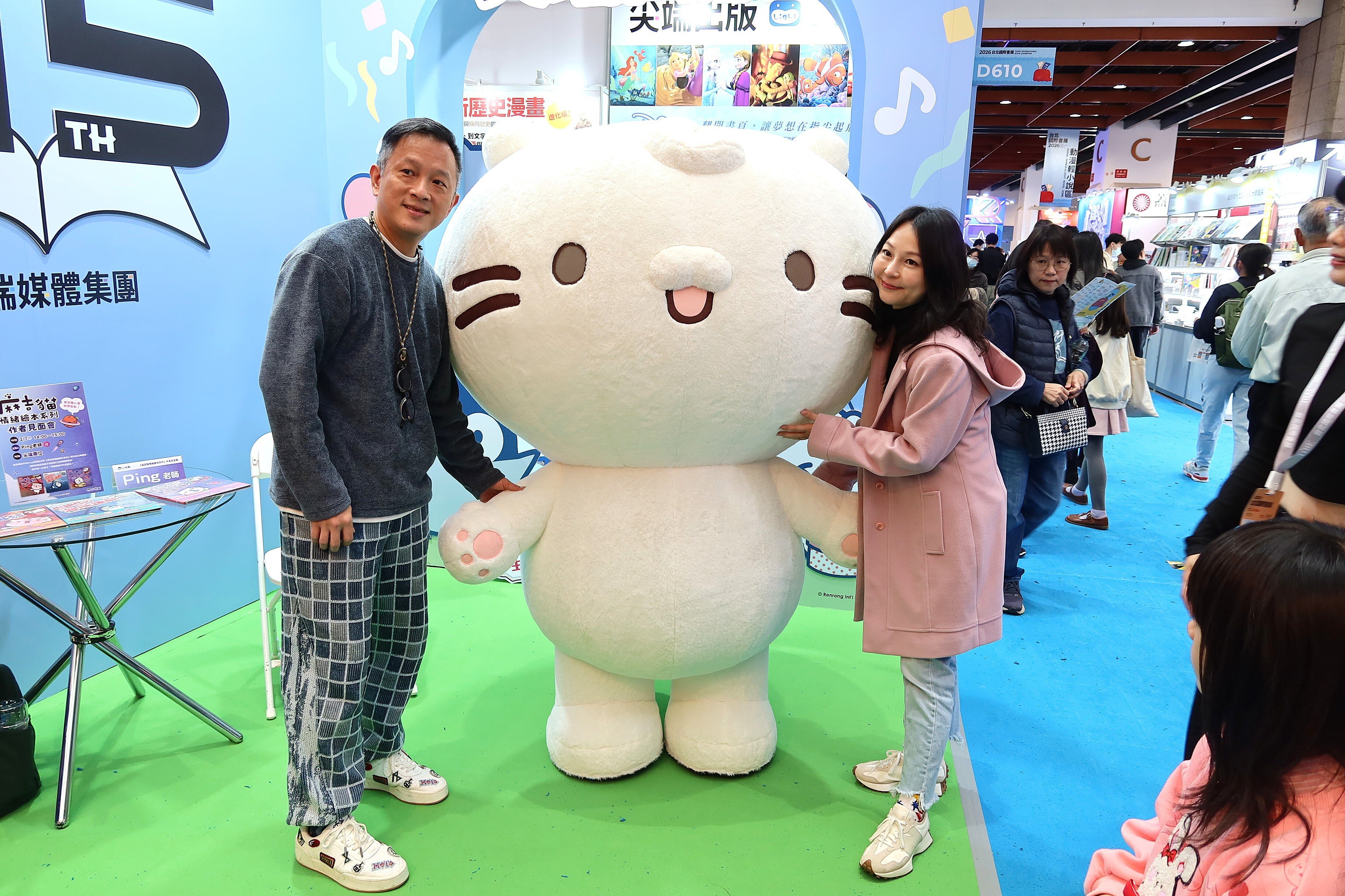 超人氣「麻吉貓」一路從捷運萌到書展現場,立刻成為親子焦點!創作者 PING 老師今(2/7)親自現身書展尖端攤位,帶著麻吉貓和孩子們近距離互動,現場笑聲與驚呼聲不斷,療癒指數瞬間破表。PING 老師也分享,麻吉貓已陪伴大家走過 13 年,當年被療癒的小孩,如今都長大了。