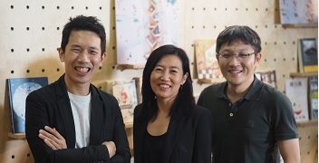 《小故事大經濟:臺灣出版品的跨域應用》論壇講者合照,左起涂豐恩、胡晴舫、譚光磊