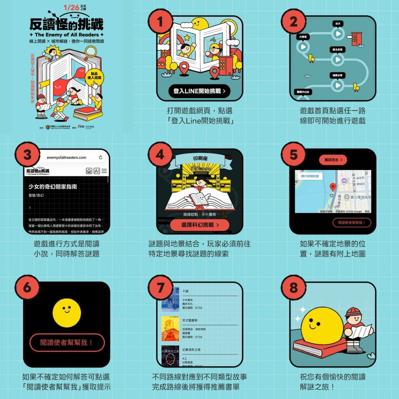 更多活動資訊與參與方式,詳見「反讀怪的挑戰」遊戲官方網址 https://enemyofallreaders.com/